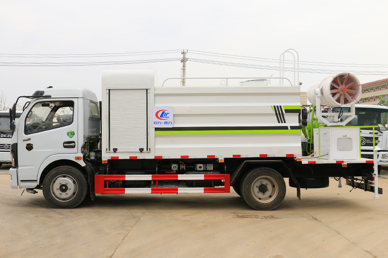 噴霧降塵車,抑塵效果約為普通灑水車的30倍,一臺(tái)噴霧降塵車的工作直徑可覆蓋4個(gè)標(biāo)準(zhǔn)足球場(chǎng)。水箱中的水經(jīng)過(guò)霧化后,由高壓風(fēng)機(jī)噴出,水霧顆粒極為細(xì)小,達(dá)到了微米級(jí),其吸附力也增加了3倍,耗水量卻降低了70%,遭遇霧霾天氣、空氣質(zhì)量PM2.5嚴(yán)重超標(biāo)時(shí),進(jìn)行液霧降塵、可分解淡化空氣中的顆粒濃度、將飄浮在空氣中的污染顆粒物、塵埃等迅速逼降地面,達(dá)到清潔凈化空氣的效果。